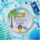 Tropical beach Luau birthday party paper plates, with cute hula girl, palm tree and beach scene, with easy to customise text. Complete your summer theme party with this customised sign, great for kids or adults.