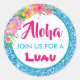Aloha Luau Blue Glitter Tropical Hibiscus Classic Round Sticker