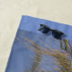 Pretty tropical scene for hot summer days. Aloha is written in a sunny yellow fun script. Background has blue sky with pretty close-up of three palm trees with fronds blowing in the ocean breeze. Cool for male or female. Original Photography © and Design by TamiraZDesigns.