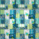 Turquoise, teal blue, navy blue, lime green and aqua colorway. Our tropical patchwork is a combination of our best selling aloha prints. This design is a perfect way to add a touch of aloha to your home decor. Palm Whisperer, Malia Hibiscus, Midnight Garden, Surf Pareau, Momona Pineapple, Makapuu Beach and some tropical plaids create a patchwork utilising a coordinated colour story. Great for that beach house, dorm room or your tiki lounge!