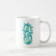 Summer chic mug features the Hawaiian greeting "aloha" in white handwritten lettering inscribed inside a tropical pineapple illustration in breezy turquoise watercolors.