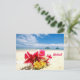 Tropical Flowers on a Peaceful Hawaiian White Sand Beach Looking Over the Ocean on a clear day. Beautiful way to send some Aloha from wherever you are!
