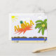 Customise this tropical design which features a beach with a cute little snail, a banana palm tree, seashells, and a big ALOHA centred with a pineapple.
