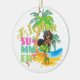 Aloha Summer Ornament featuring a hula dancer on the beach of Hawaii.