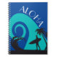 Trendy summer speaker with surfer and palm trees silhouette and Aloha greeting.