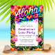 Features bright tropical hibiscus flowers, fun flamingos, and personalized with your information. Back of invitation has lush tropical flowers and "Aloha". Make memories as colorful as a Hawaiian sunset with this beautiful invitation!