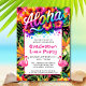 Features bright tropical hibiscus flowers, fun flamingos, and personalized with your information. Back of invitation has lush tropical flowers and "Aloha". Make memories as colorful as a Hawaiian sunset with this beautiful invitation!