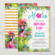 A tropical Aloha Birthday Luau invitation designed with lush palm leaves, exotic flowers and a fun flamingo decked out in vibrant feathers! You'll make memories as colourful as a Hawiian sunset with this invitation! Personalised with your event information, perfect for Luau, Pool Party or Barbeque. So grab your grass skirt, dust off your flip-flops and get ready to hula!