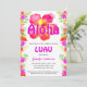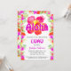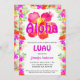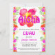 Wedding bridal shower luau invitation features colourful Aloha against a bright tropical hibiscus flower, framed with exotic flowers, and personalised with your information. A fun way to invite guests to your special day!