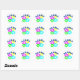This round sticker contains a colourful design of Hawaiian flowers in pink, yellow, green and blue. Very tropical graphic with a worn out effect over it.