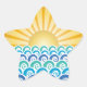 Star sticker featuring design with different shades of blue waves with bright sun on the horizon.