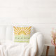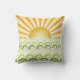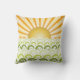 Pillow with design of different shades of green waves with the sun rising on the horizon.
