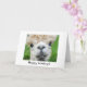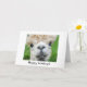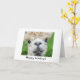 Folded card with a cute picture of an alpaca on the front with the text 'Happy holidays'.