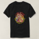 I give wanted to give this a 4 instead of a 5 because these Basic DARK T0shirts run unexpectedly SLIM or Narrow. Which is great if you do not have a potbelly, but I have a paunch. It isn't the shirt's fault that I've got a beer belly. The design and shirt itself is a quality cotton shirt. The color is more of a deep purple, but still a very pretty color. The Basic DARK T-shirts run a bit SLIMMER than the Basic Ts. The neck is a fraction narrower (or seems to be narrower) also. I'm a paunchy middle-aged woman and my neck is 12 inches (31cm) thick and the neckline fell about the same as in the photo of the man, and I had the desire to tug it a bit. So if you're a thick necked man or like loose shirts, be aware these are slimmer shirts. Once I get rid of my lockdown paunch it'll look great. The shirt washed well in cold water with no apparent bleeding. We don't have a dryer, so it hung dry. Did not shrink. Love the colors and the design. The design looks smaller on my shirt than it does on the model on-line. But still, it looks good on the shirt. The printing looks as it does on the model, just the size seems fractionally smaller. Washed garment in cold water, hung dry and design appeared unaffected.