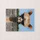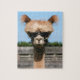 Humourous alpaca puzzle. Image of an alpaca named Classified, who has always been the class clown!