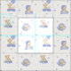 Happy Little Teddy Bear playing with blanket, with alphabet and numbers in the background.