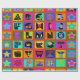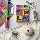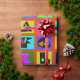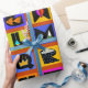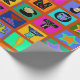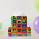 Christmas wrapping paper, colourful gift wrap, birthday wrapping paper, red blue yellow, orange green pink, tribal folk art, ethnic folk art, alphabet folk art, contemporary wrapping paper, Virginia Vivier, Vagabond Folk Art, gift wrap.