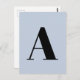 Alphabet Custom Letter | Modern Minimalist Blue Postcard
