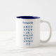 alphabet mug with alphabet forwards and backwards on it in dark blue