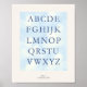 This bordered alphabet artwork features softly lettered A–Z characters in navy, set against a dreamy sky-washed background and framed with a warm ivory border. The classic serif lettering feels timeless and peaceful—perfect for nurseries, playrooms, reading corners, or early learning spaces designed with care.