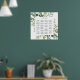 This wedding square seating chart features painted watercolor eucalyptus greenery, green leaves with a square frame. For more advanced customisation of this design, Please click the "Customise further" link. Matching items are also available.