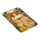Magnet featuring Alphonse Mucha’s lithograph Reverie (1897). A portrait of a woman in a white dress reads a book, sitting in front of pink and orange flowers. A great gift for fans of Art Nouveau and Bohemian art.