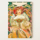 Planner featuring Alphonse Mucha’s lithograph Reverie (1897). A portrait of a woman in a white dress reads a book, sitting in front of pink and orange flowers. A great gift for fans of Art Nouveau and Bohemian art.