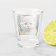 Shot Glass featuring a kitten in the Art Nouveau style of Alphonse Mucha! A white and fluffy kitten with blue eyes poses with yellow flowers. A cute gift for cat lovers and Art Nouveau collectors!