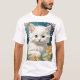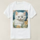 T-Shirt featuring a kitten in the Art Nouveau style of Alphonse Mucha! A white and fluffy kitten with blue eyes poses with yellow flowers. A cute gift for cat lovers and Art Nouveau collectors!