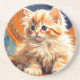 Sandstone Coaster featuring an orange kitten in the Art Nouveau style of Alphonse Mucha. This cute kitty with blue eyes adorably looks at you against a backdrop of a night sky full of stars. A wonderful gift for cat lovers and Art Nouveau collectors!