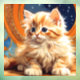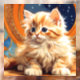 Window Cling featuring an orange kitten in the Art Nouveau style of Alphonse Mucha. This cute kitty with blue eyes adorably looks at you against a backdrop of a night sky full of stars. A wonderful gift for cat lovers and Art Nouveau collectors!
