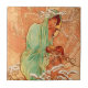 Tile featuring Alphonse Mucha’s lithograph Winter (1896). This art piece is part of Mucha’s first The Seasons series. Winter is represented as a woman wrapped in a green cape. She stands with bushes covered in snow. A unique gift for fans of Art Nouveau and Czech art!