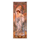 Alphonse Mucha Evening Reverie print. Painting on canvas from 1898. Czech artist Alphonse Mucha was renowned for his allegorical paintings and posters. Evening Reverie features a beautiful young woman leaning on her elbow overlooking a pink sunset with pink flowers in bloom all around. She wears a thin white dress and is surrounded by heavy ornamentation. A great gift for fans of Mucha, art nouveau, and vintage posters.