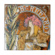 Alphonse Mucha Gismonda tile. Lithograph poster from 1894. Generally considered one of the foundational works of the Art Nouveau movement, Alphonse Mucha’s Gismonda first appeared in Paris in 1895 promoting Victroien Sardou’s play starring French actress Sarah Bernhardt. The poster features the actress holding a palm leaf decked out in an elegant gold and white royal robe with exotic pink flowers in her red hair. The title of the play appears at the top of the poster and the theatre appears at the bottom, both ornately decorated in the style that would typify much of Mucha’s commercial work. A great gift for fans of Mucha, art nouveau, and vintage theatre posters.