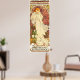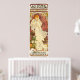 Alphonse Mucha Lady of the Camellias poster. Lithography poster from 1896. Czech artist Alphonse Mucha crafted many of the most recognised and celebrated posters of the art nouveau period. This poster features French actress Sarah Bernhardt wearing a white gown surrounded by camellias and stars over a purple background. A great gift for fans of Mucha, art nouveau, and vintage prints and posters.
