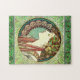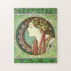 Alphonse Mucha Laurel puzzle. Lithograph poster from art nouveau period. Czech painter Alphonse Mucha created some of the most beloved advertisements and posters of the art nouveau period. Laurel is a beautiful spring allegory featuring a gorgeous young woman in profile with flowers and laurels in her hair. The portrait is framed by an intricate pattern of interlocking leaves. A beautiful gift for fans of Mucha, art nouveau, and vintage art posters.