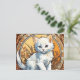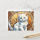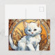 Postcard featuring a cat in the style of Alphonse Mucha! This fluffy white kitten looks adorably at the viewer. Flowers decorate the scene. A purr-fect gift for cat lovers and Art Nouveau collectors!