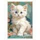 Photo Print featuring a white cat in the style of Alphonse Mucha! This blue eyed fluffy kitten poses with pink flowers and blue blankets. A fabulous gift for cat lovers and Art Nouveau collectors!