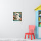 Poster featuring a white cat in the style of Alphonse Mucha! This blue eyed fluffy kitten poses with pink flowers and blue blankets. A fabulous gift for cat lovers and Art Nouveau collectors!