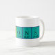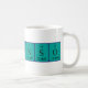 Alphonso spelled out as Al P H O N S O (Aluminium Phosphorus Hydrogen Oxygen Nitrogen Sulphur Oxygen) on a mug for the scientist in you.