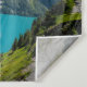 Photo wall tapestry with the turquoise Oeschinensee lake, surrounded by high alpine mountains on a summer day in the Alps, high above Kandersteg in Bernese Oberland, Switzerland.
