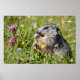 Closeup alpine marmot (Marmota marmota - Mammal) eating flower in the French Alps, Savoie department at La Plagne