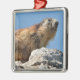 Alpine marmot on rock metal tree decoration