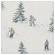 This fabric has downhill skiers navigating through tree-lined slopes, with elusive yetis playfully hiding and darting across the scene.