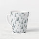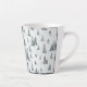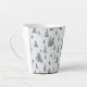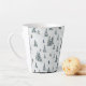 This latte mug features downhill skiers navigating through tree-lined slopes, with elusive yetis playfully hiding and darting across the scene.