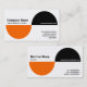 An attractive retro modern business card template design with an alternating half circles, or crescents motif in two colours. Company details, address, and web url on the front, with name and other contact details on the reverse side using the same theme. Suitable for many types of business.