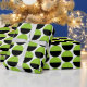 A retro pattern design made up of alternating crescents in Martian Green and black.