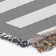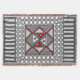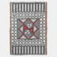 This concentric square features simple geometric patterns in shades of grey and red with the colours in the layers alternating when switching from the vertical to the horizontal.