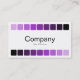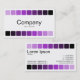 A stylish modern business/profile card template. Edged top and bottom with a row of nine round cornered squares going from a light purple to black. Company details on the front with name and contact details on the back.