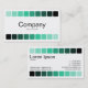 A stylish modern business/profile card template. Edged top and bottom with a row of nine round cornered squares going from light greens to black. Company details on the front with name and contact details on the back.